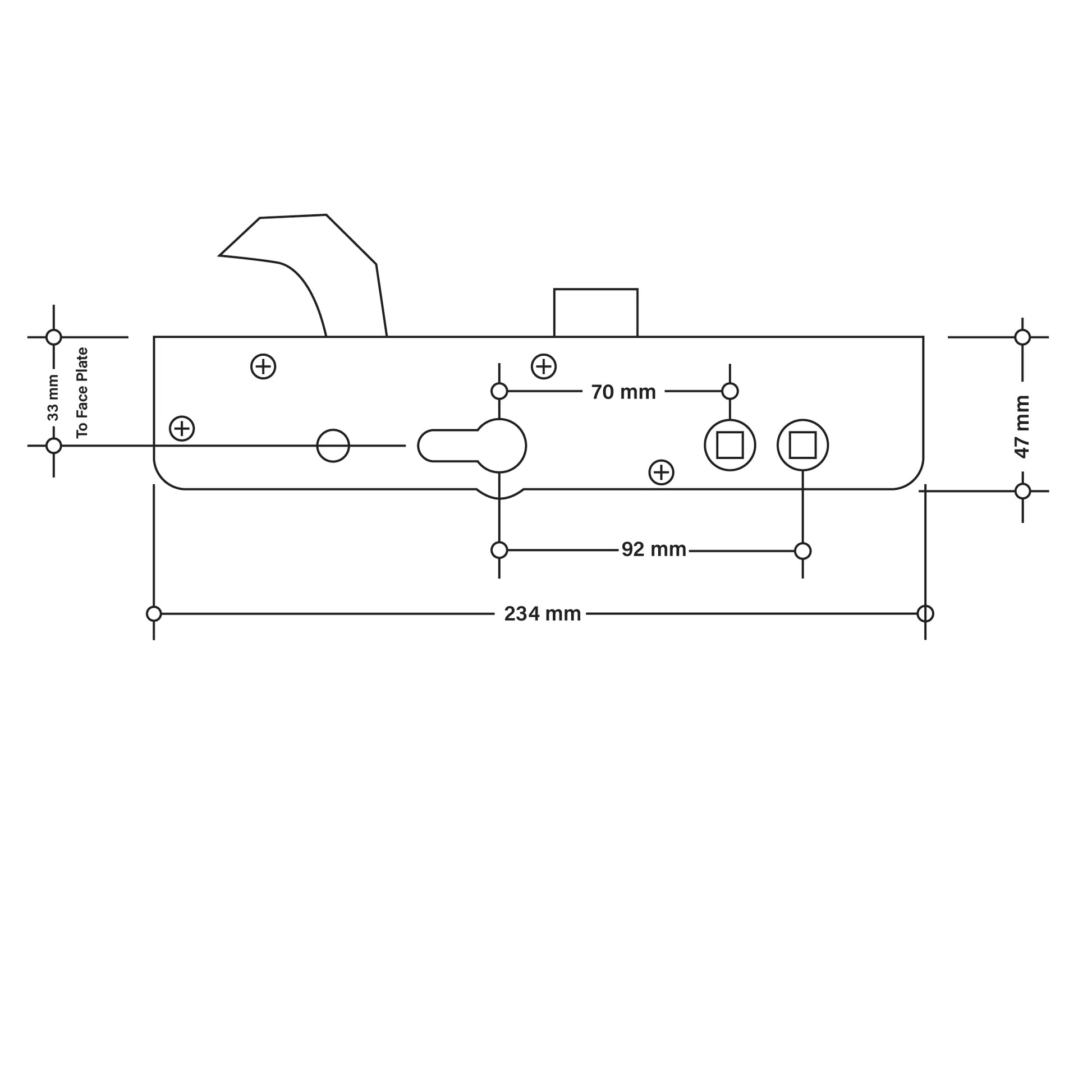 The backset is the distance from the front edge of the faceplate to the centre of the keyhole (cylinder).
