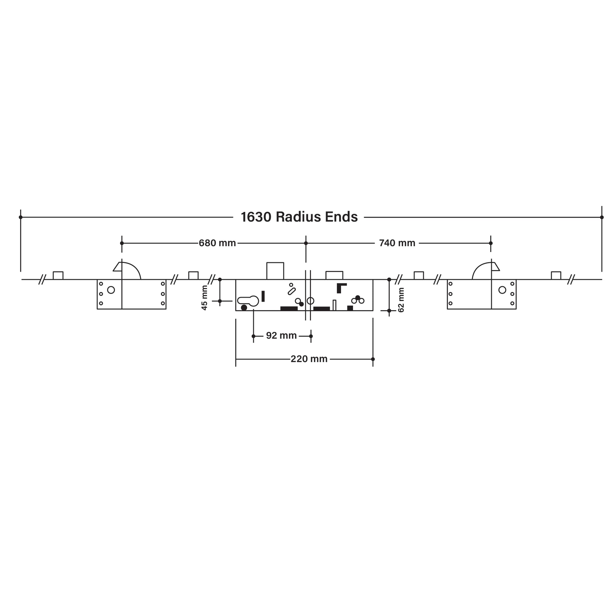 ERA multipoint lock with two hooks and a latch & deadbolt centre case. It has a 45 mm backset, 92 mm centres and a 20 mm radius faceplate. The universal handing makes it suitable for both left‑ and right‑handed doors.