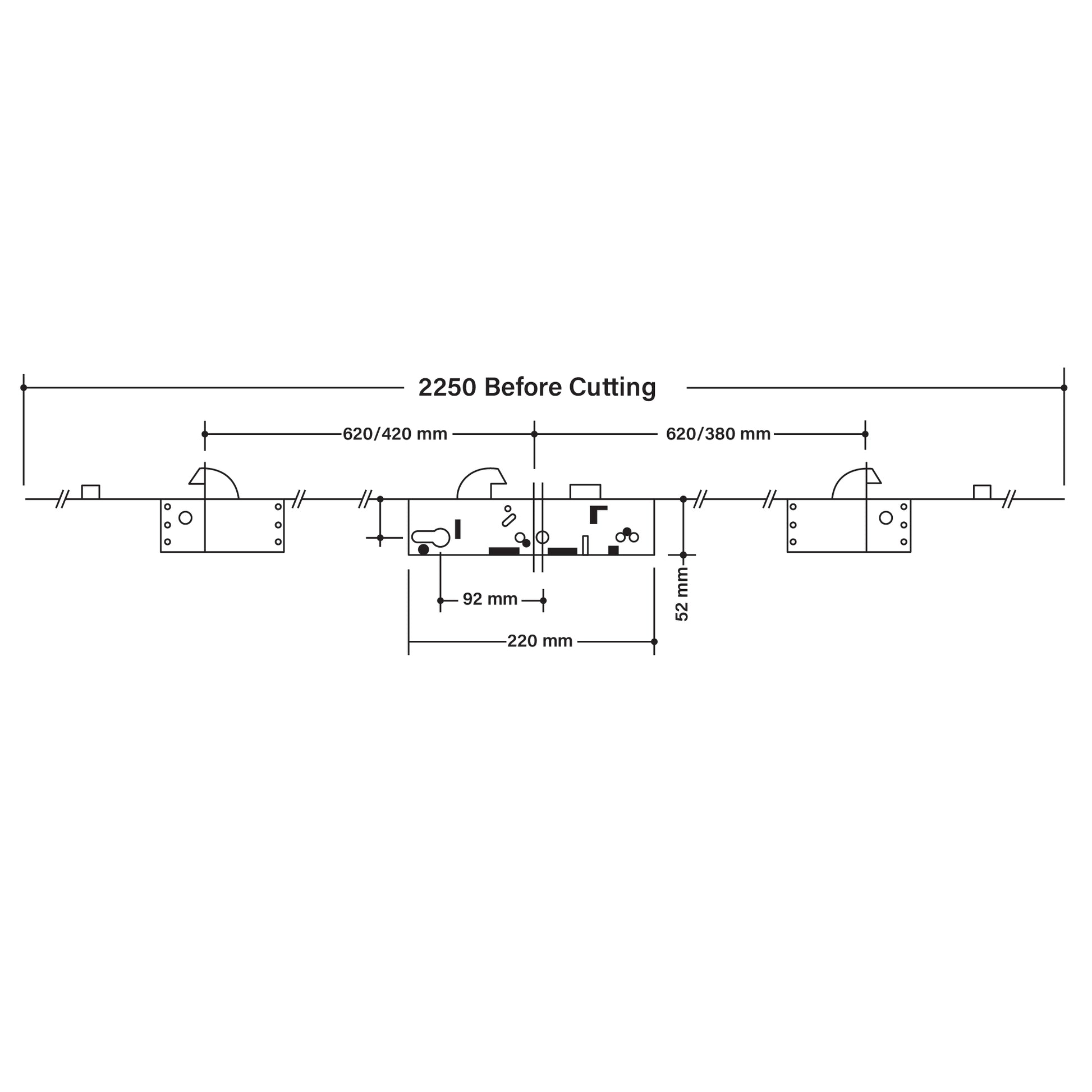 A secure multipoint mechanism with two hooks, two rollers and a latch & deadbolt central case. It suits 35 mm backset, 92 mm centres and is available with different lock‑point spacing to match your existing door lock.
