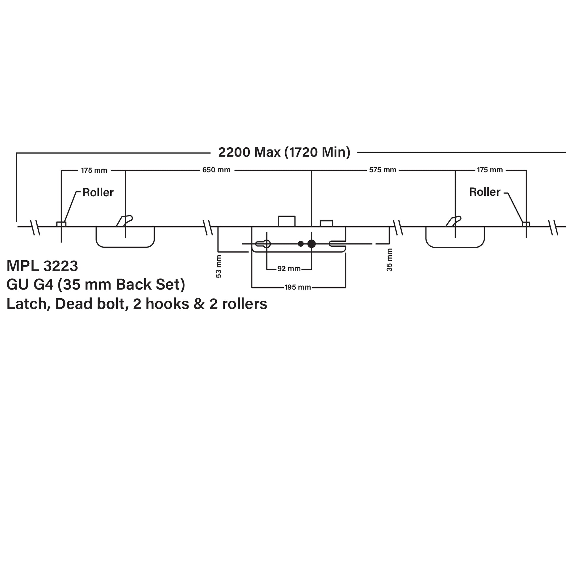 Combine the security of hooks with the compression of rollers using this GU two‑hook, two‑roller multipoint lock. Two opposing hooks firmly pull the door into the frame, while two adjustable rollers provide smooth sealing. Designed for 92 mm PZ handles and a 16 mm faceplate, the lock has a 35 mm backset and is offered in three overall lengths: 990 mm, 1225 mm or 1490 mm. Choose between single or split spindle operation depending on your handle set. Ideal for uPVC and composite doors needing a reliable upgrade.