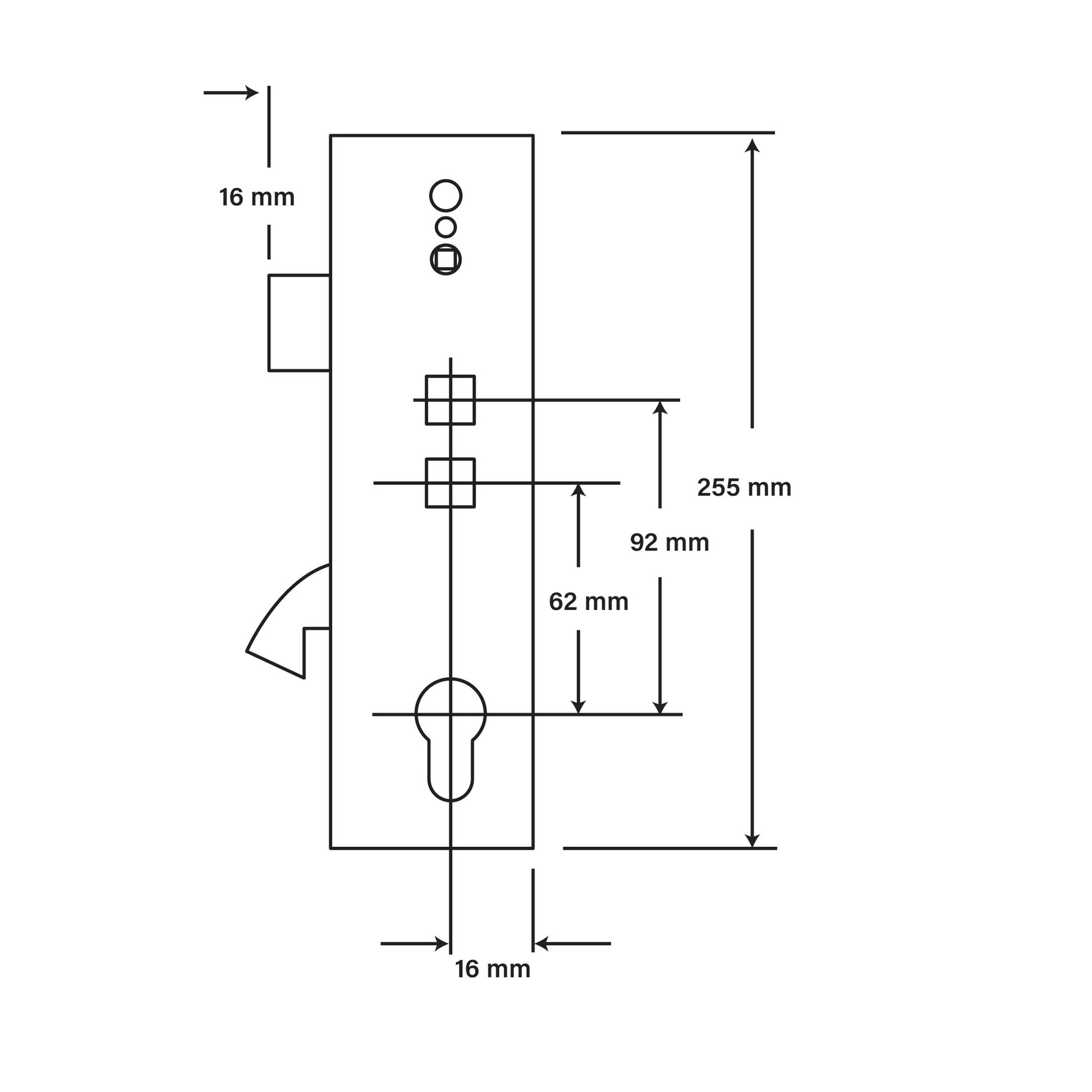 This is the distance from the centre of the keyhole to the centre of the square spindle hole (where the handle goes through).